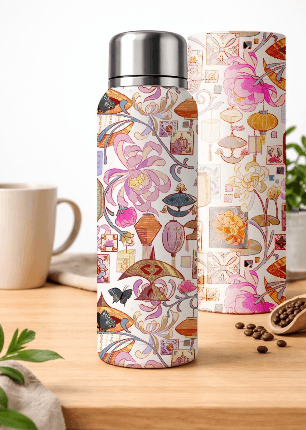 "Mosaic of Malaysia" was one concept out of three options that the client chose. It is a seamless pattern featuring diverse cultural items from the Baba Nyonya or Peranakan community descended from early Chinese settlers who intermarried with local Malays, especially in places like Malacca and Penang. They are known for their unique blend of Chinese and Malay traditions, including distinctive cuisine, clothing, language, and customs. You can see various wau (Malaysian kite), lanterns, Peranakan tiles, and the peony (a popular motif appearing across Peranakan wares).